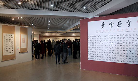 展览共展出翟德年先生创作的航天主题书法作品40余件,包括中华优秀传统诗文典籍中关于浩瀚星空、飞天探梦的相关内容,以及宇航员景海鹏三度巡天主题创作等,受到了师生及社会观众的欢迎与好评。