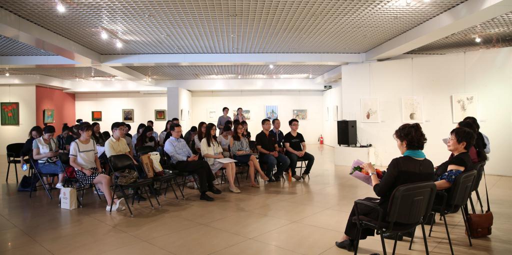 林那北老师谈到文学其实是由文字来表达我们对世界的看法,而绘画是用色彩来表达,这中间并没有太多的界限,她通过讲述漆画创作的过程以及在做漆画过程中,赋予她对世界新的发现和感知,传达对生命和自然的表达。