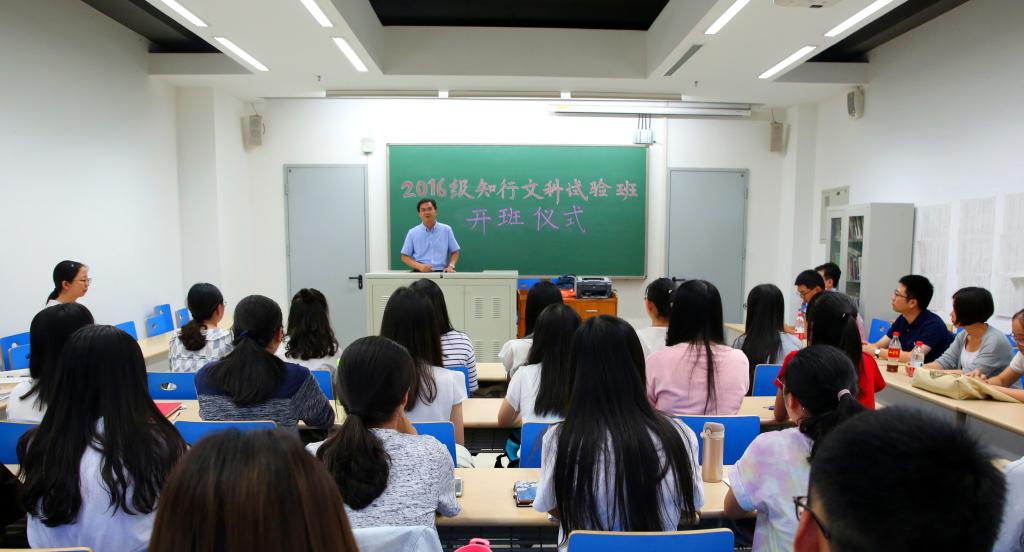 9月24日晚,北航2016级知行文科试验班开班仪式在沙河校区专用教室举行。beats365亚洲体育投注蔡劲松院长,教师代表张家骥、罗旻、顾家宁、陈思、王佳发以及辅导员、老生代表,30名2016级知行文科试验班全体同学参加了开班仪式。本届试验班班主任段颀老师主持开班仪式。