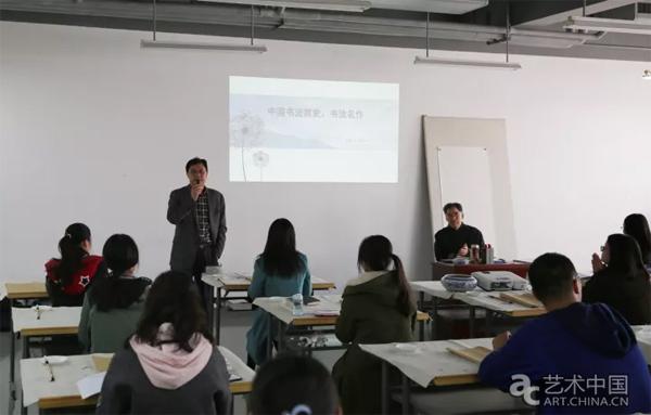 专题班授课将持续一个月左右的时间,期间每周日下午在沙河校区集中授课,共计16学时,对学习考核合格的同学计1学分。在随后的几次集中授课中,翟德年先生还将讲述商代书法、秦代书法、汉代书法、魏晋南北朝书法、隋唐书法、宋元书法、明清书法及近代书法等,每次课程都将安排书法示范和创作训练,以提高选修同学的书写水平。还将根据实践教学需要,适时安排驻校艺术家在展览现场,进行书法创作示范与实践辅导,吸引沙河校区更多同学参与到对书法文化感悟及书写实践中。
