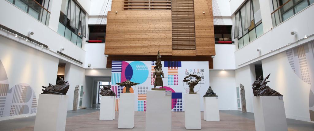 蔡劲松院长带领师生首先来到清华美院教学展厅,观看了清华大学美术学院2018届硕士研究生毕业作品展。该展览由陶瓷艺术设计系、工业设计系、信息艺术设计系、绘画系、雕塑系、工艺美术系、艺术史论系等13位硕士研究生的150余件毕业作品构成,展品种类丰富,形式多样。展览期间,蔡劲松院长邀请其中的展品作者董明良对自己系列作品——“沉默的无言”进行背景介绍和讲解。“沉默的无言”系列作品共包含四件作品单元,分别是“润物无声”“流年无华”“青峰无欲”和“禅起悟心”,创作灵感主要来自水滴、星辰、山峰和明月。在聆听董明良讲解的同时,蔡劲松院长同研究生同学们一起,对展品的设计、策展细节、VR现代科技与展览的融合等问题进行了深入讨论,并从文化传播与管理角度进行了现场教学指导。