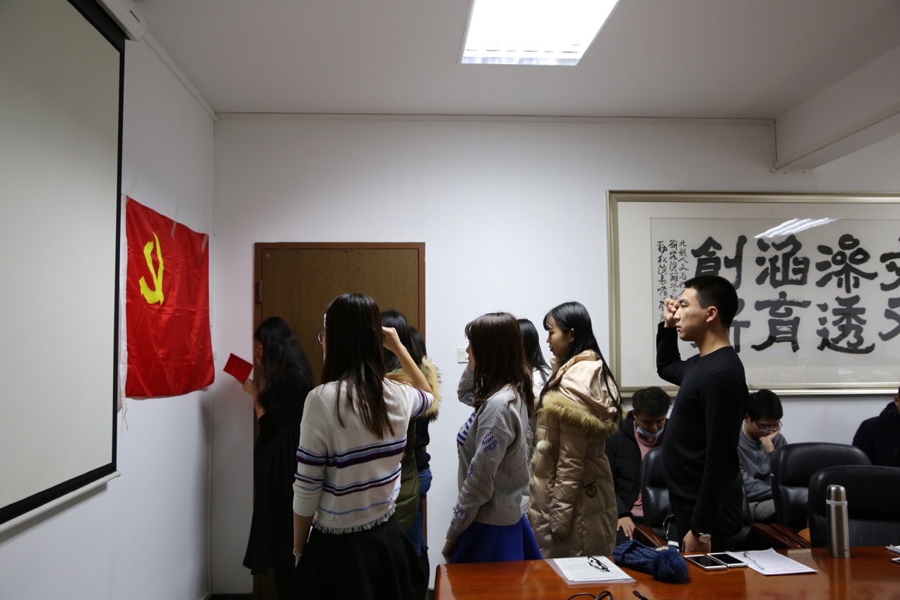 随后,本科生党小组组长李曦同志带领7位同志在党旗下重新宣读入党誓词,支部委员田飞龙老师代表支部肯定了7名同学在过去一年中的表现,并希望他们在今后的日子里继续系统地深化研读马列主义,扎根中国大地深刻理解新时代下中国特色社会主义道路的发展经验。