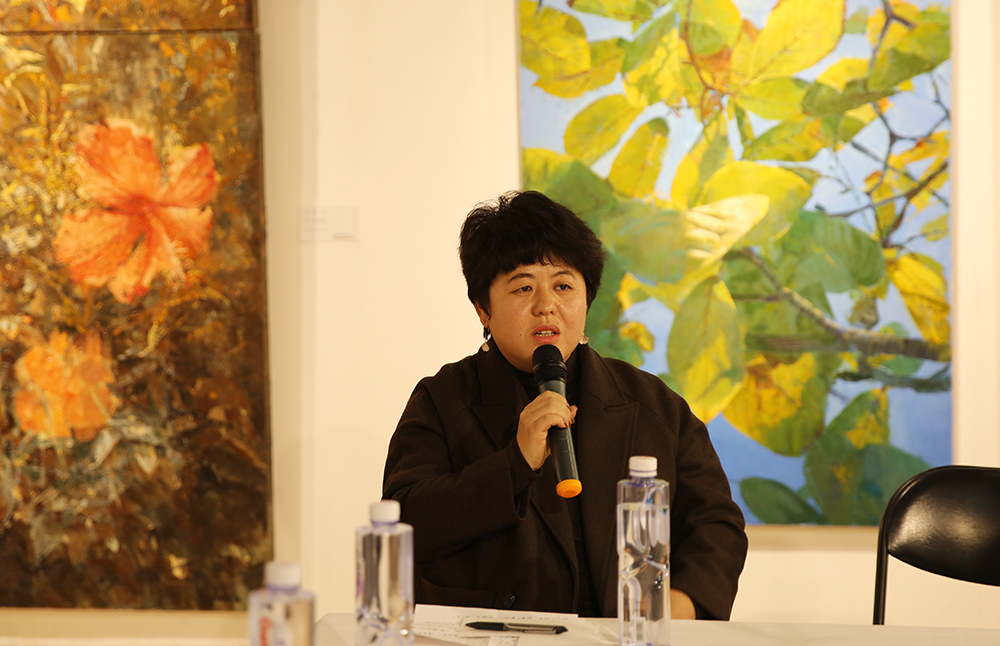 参会学者、嘉宾在发言中,对韩冉飞的油画创作手法、风格特点、主题寓意、心路历程及艺术成果等进行了深入研讨,充分肯定了她在油画艺术创作道路上的耕耘与收获,认为这次个展以“光”为主题,较全面地呈现了韩冉飞长期以来对于艺术本质的不懈追寻及积极有益的探索。大家认为,展览展出的作品既注重对自然世界的微观描绘,又注重对生命世界的艺术观照和抽象凝练,其厚重的哲学性表达和巨大艺术张力,在近年来的油画创作界和油画个展中实属罕见。特别是韩冉飞在坚持艺术创作的同时,坚持在青少年残疾机构从事公益绘画教学,将自己的艺术实践之光与爱,投入到社会之光与爱的海洋中,使得这次展览又有了不同寻常的意义和价值。