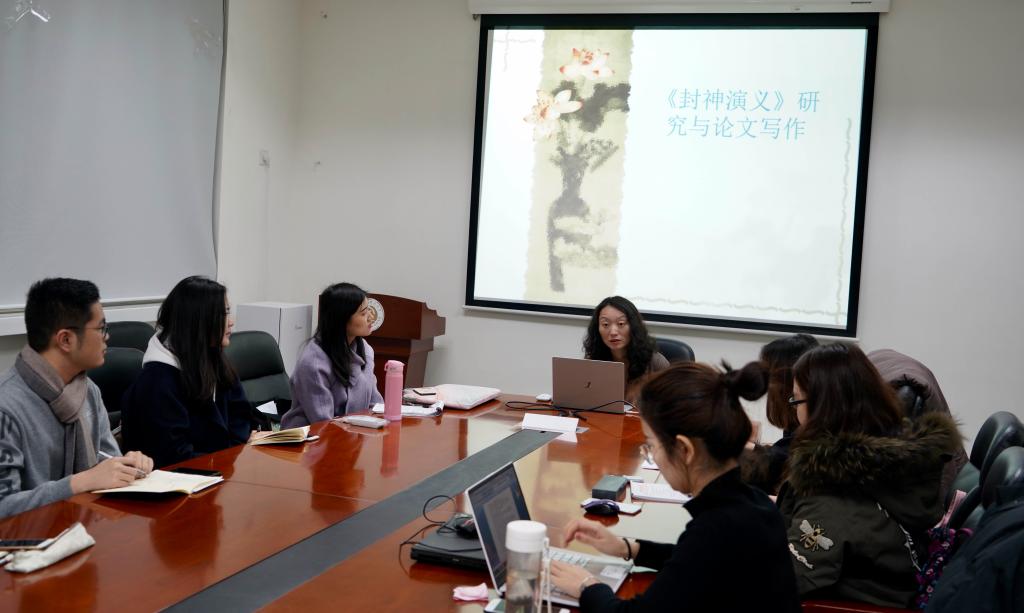 应2018级研究生邀请,李静老师在12月18日下午2:00在105会议室进行了读书分享,此次阅读分享会以《<封神演义>研究与论文写作》为主题。李静老师从阅读经典开始,到学术研究实例展示,再到对研究生的答疑,传达了“深耕经典”、“批判思考”、“扎实为学”的谆谆教诲,从《国家宝藏》到《封神演义》,李老师形象传授学术研究的基本思路,同学们收获颇丰。