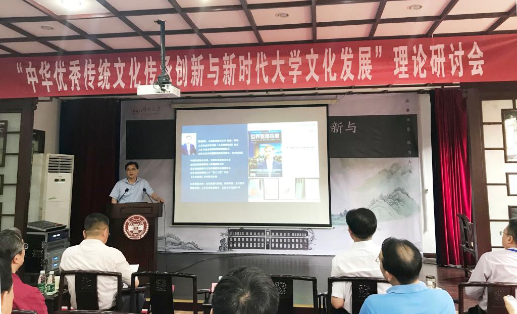 研讨会上,湖南商学院党委书记唐亚阳,华中师范大学副校长蔡红生,西安科技大学党委副书记樊建武,中国人民大学哲学院院长郝立新,清华大学党委宣传部常务副部长覃川,北京大学网信办主任兼两办副主任蒋广学,中山大学文化研究所所长李宗桂,湖南大学岳麓书院院长肖永明,重庆大学党委教师工作部副部长彭述娟,中南大学马克思主义学院副院长周湘莲,分别作了《新时代大学文化发展的几个着力点》《溯源寻道,彰显大学文化的中国特色》《拔节孕穗更需沃土滋养》《大学文化建设中的自觉和自信》《大学在中华优秀传统文化传承创新中的使命与实践》《返本与开新——关于信息时代文化更生的断想》《我看中华优秀传统文化的当代价值》《书院精神与新时代大学文化建设》《弘扬中华优秀传统文化 创新社会主义先进文化》《中华优秀孝道文化与社会主义核心价值观的关系》的主题报告。