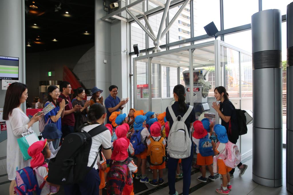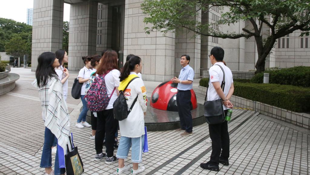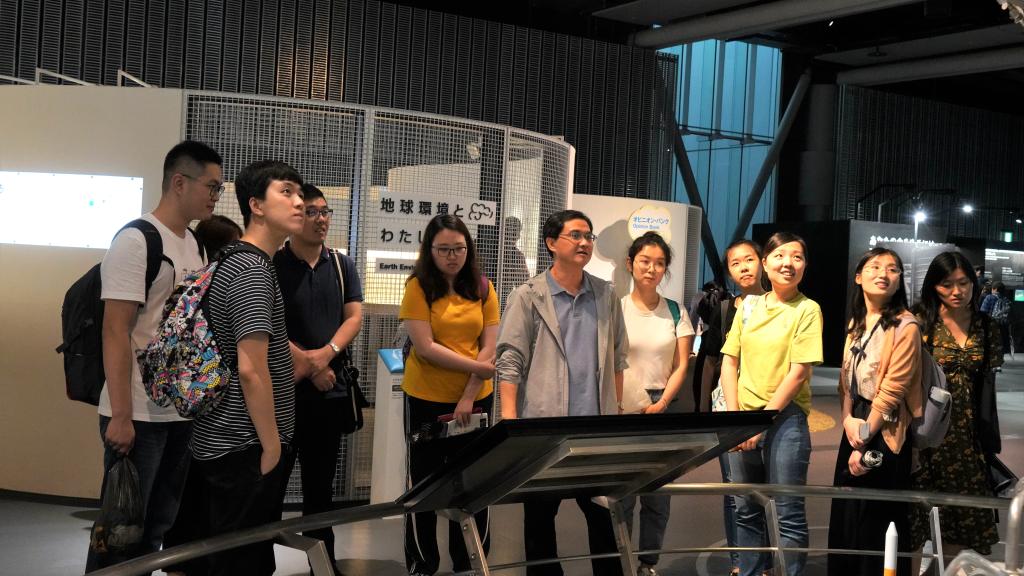 7月7日下午,高研院研究生实践教学团一行14人顺利抵达日本东京,经过短暂的修整之后前往日本未来科学馆。蔡劲松院长在未来科学馆内,以科普展陈为现场教学主题,引领同学们深入观察未来科学馆如何推动展陈、项目与观众的互动,从而达到对观众传播知识、开展科普教育的目的,让观众更好的融入到科技馆的文化氛围之中。