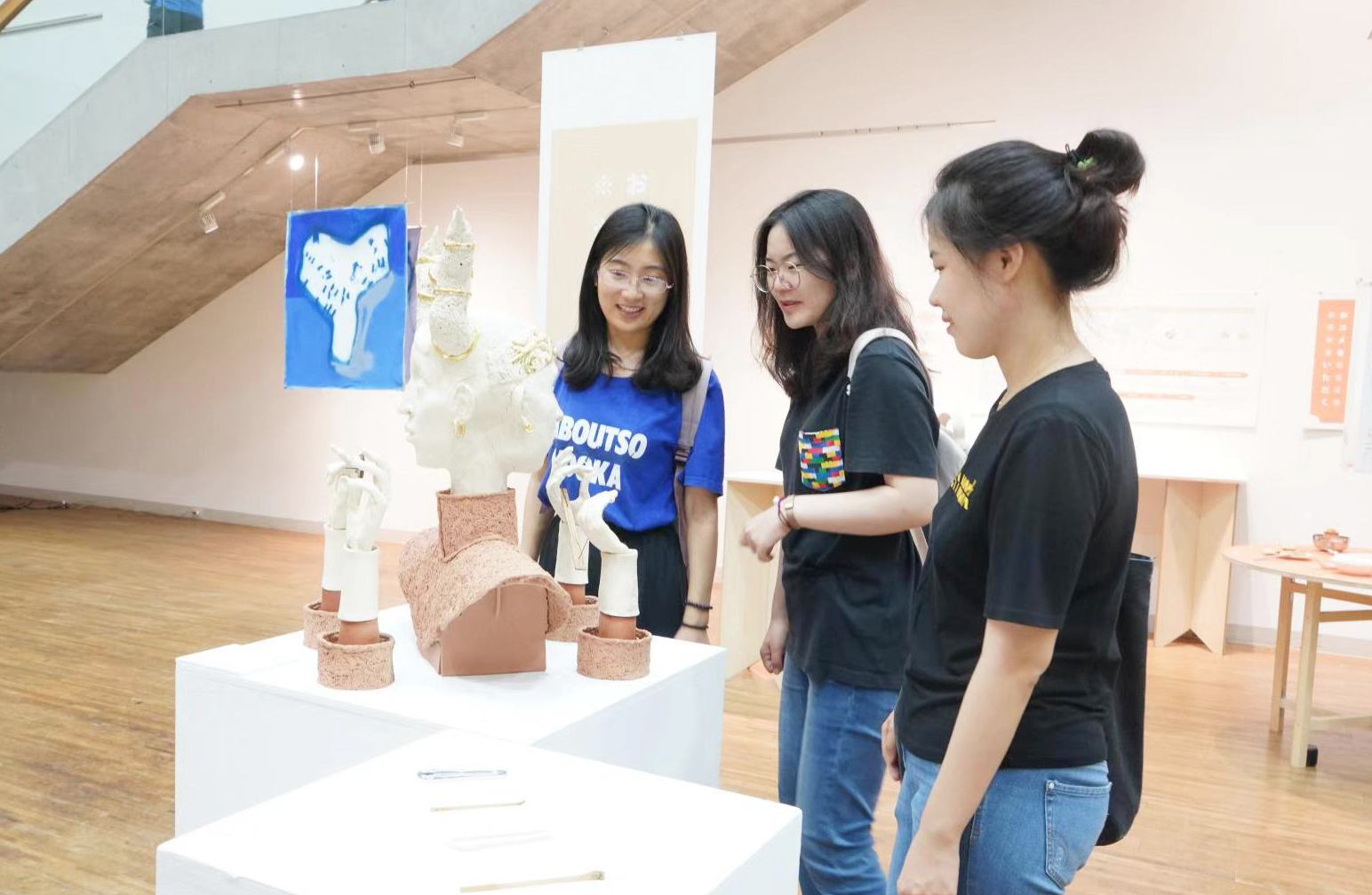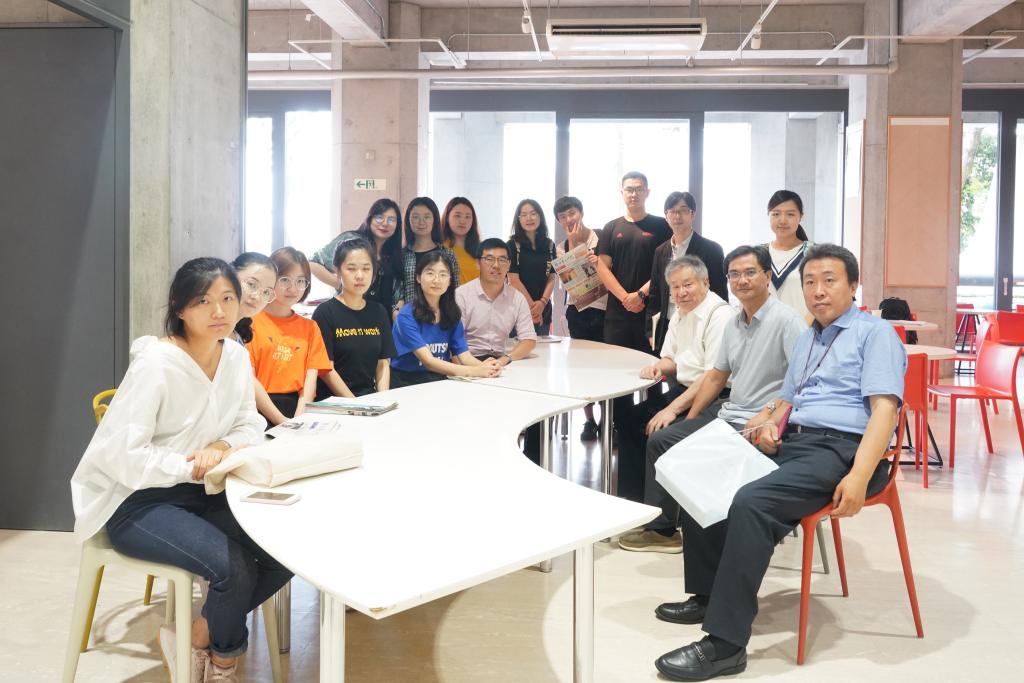 盐见贵彦副教授首先带领大家参观了该校的研究生作品展览和完善的教学、创作设施。随后,李庚教授、盐见贵彦副教授、日本《关西华文时报》丛中笑总编等与高研院实践教学团一行围绕传统文化的弘扬与传播、学科的交叉融合等主题进行了深入座谈交流。