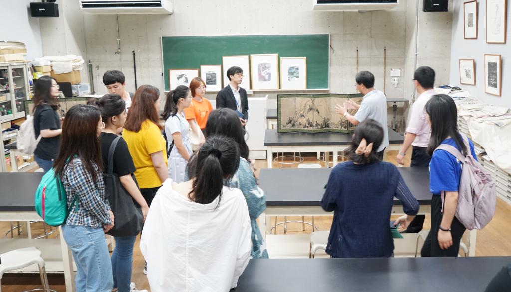 为了解日本在文化特别是传统文化和旅游产业相结合方面的做法和管理经验,7月11日,实践教学团一行还先后参观了京都府立堂本印象美术馆、三十三间堂博物馆,考察了京都的部分代表性物质与非物质文化设施。通过现场参观和调研,同学们对如何让传统文化与现代文化相互融合,对传统文化的弘扬与保护,文化和旅游产业结合等主题有了直观的感受和深入思考,对传统文化形成自我保护机制,推动文化旅游及促进商业化运营的日本模式与经验,展开了学习思考。在现场参观过程中,同学们还将京都市内的古街道与国内的文化街区如北京南锣鼓巷、成都的宽窄巷子等进行对比,探讨日本文化街区的改造经验,从专业角度对其独有的文化属性进行剖析。