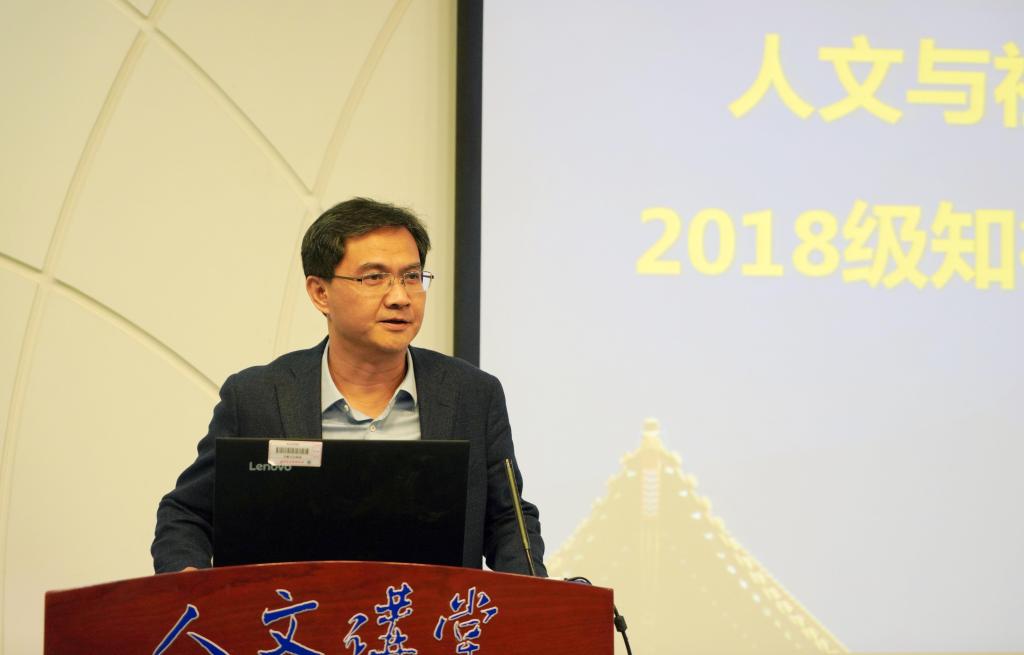 教师代表顾家宁老师发言,他用“自由、自律、自觉、为学、成人”5个关键词,希望大家在未来的学习中能够在自由的成长环境中学会自律,由自律寻找到生命的价值与自觉。学有小成,迈上“成人”的大道。努力将自己培养成具备“融汇中西、贯通古今,传承文化”等综合素质和能力的文科拔尖创新人才。