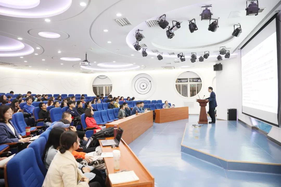蔡劲松院长指出,十九大以来,基于满足人民日益增长的美好生活需要、推进人类命运共同体建设的愿景,将文化建设与经济建设、政治建设、社会建设、生态文明建设相并列,共同构成“五位一体”总体布局,并从提高国家文化软实力的高度,对文化管理体制改革、公共文化服务体系、文化创意产业、文化传播交流等方面,作出了战略部署和路径安排。随后,他通过几个案例生动讲述了借助现代传媒、科研设备,传统文化在新时代焕发了新的活力和生机。故宫文物揭下神秘面纱、与大众近距离接触;《中国诗词大会》《朗读者》再度燃起国学热、文化热;浙江乌镇探索出当代元素与传统乡村碰撞融合的可能性;新媒体技术使中国传统绘画的艺术神韵立体呈现,让在场师生直观感受到了新传媒与新技术带给传统文化的新魅力。