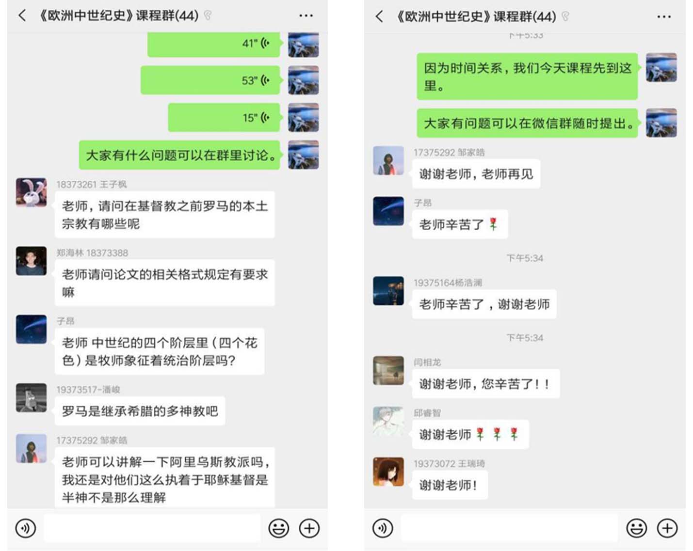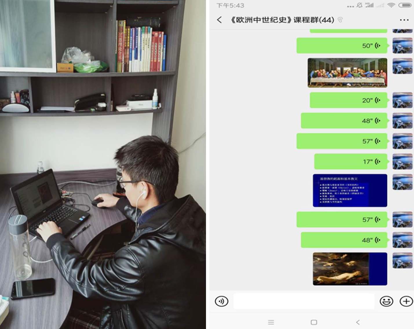 余成峰老师主讲的《欧洲中世纪史》第一堂课线上课程如期开课。通过MOOC视频和推送学习资料,学生事先进行了充分准备和深入学习,在课堂时间,通过微信群授课和多媒体手段,对课程内容进行了深度讲解和重点演绎。