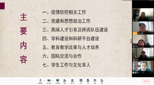 最后,学院教职工围绕疫情防控、在线教学、学院管理等工作进行了交流研讨。