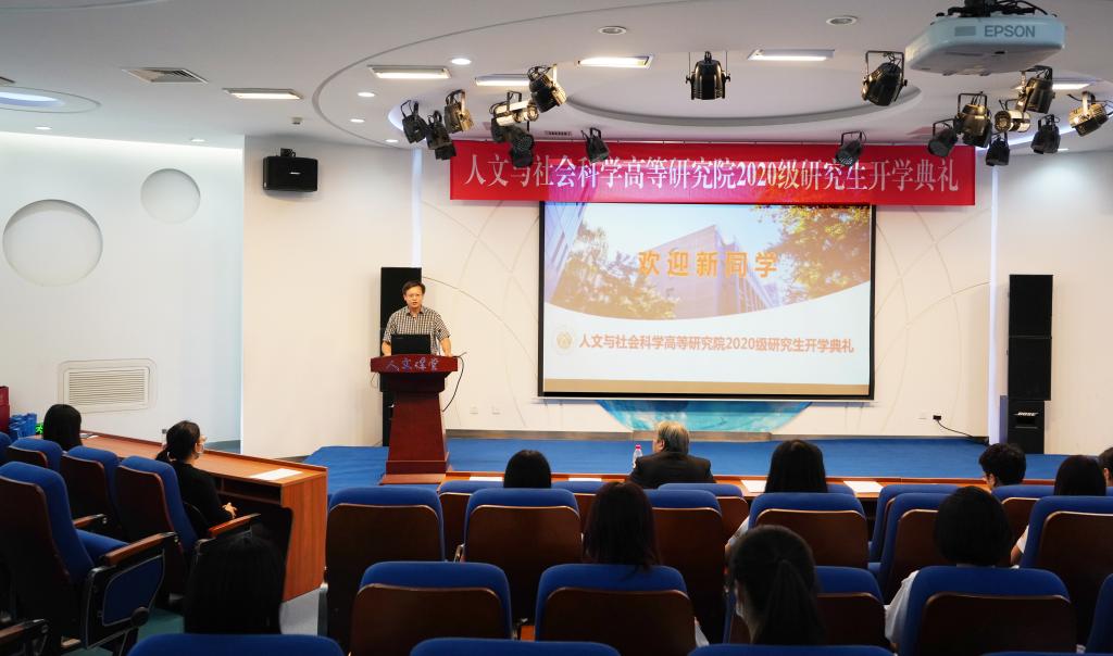 9月20日,高研院2020级研究生开学典礼在人文讲堂举行。高研院院长蔡劲松、书记于金龙,院学术委员会主任张耀南,教师代表李静、叶山岭、顾家宁、李丽珠,院分团委书记王佳发,院办公室马锦程,2020级新生辅导员尹心航、在校生代表代雨宏以及高研院全体2020级研究生新生出席本次开学典礼,典礼由于金龙书记主持。
