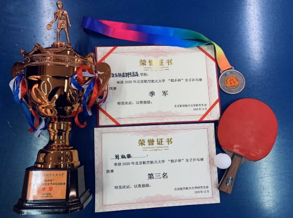 12月5至6日,首届“航乒杯”乒乓球赛在我校学院路和沙河校区举办,经过多轮的激烈比拼,我院荣获2020年beats365亚洲版官网“航乒杯”女子乒乓球联赛季军,参赛选手刘泓暄同学勇夺女子单打赛个人“第三名”的好成绩。