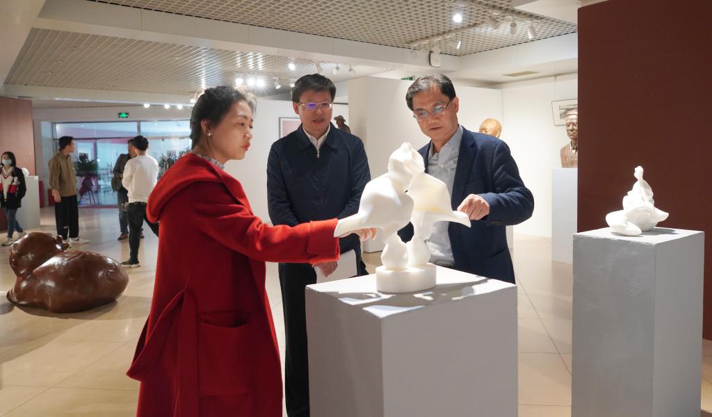 北航高研院/文传院院长、人文公管学院院长、艺术馆馆长蔡劲松教授,清华大学艺术博物馆常务副馆长、清华大学环境学院杜鹏飞教授,清华大学长聘教授、雕塑系博导、《学院雕塑》执行主编许正龙教授,北方工业大学建筑与艺术学院乔迁教授,雕塑杂志社徐永涛副主编等参加了开幕式并发言。中国民间文艺家协会彩塑专委会主任、北京工业大学艺术学院赵建磊副教授,九三学社中央组织部部长、著名策展人杨玲、北京农学院园林学院副教授李玉仓以及北航文化与艺术传播研究院的部分教师及研究生共计百余人参加了开幕式,开幕式由北航高研院党委书记于金龙主持。