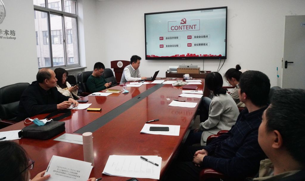 2021年11月17日,高研院组织教职工党支部全体教师党员集体学习习近平总书记在党的十九届六中全会上的重要讲话精神及全会精神。