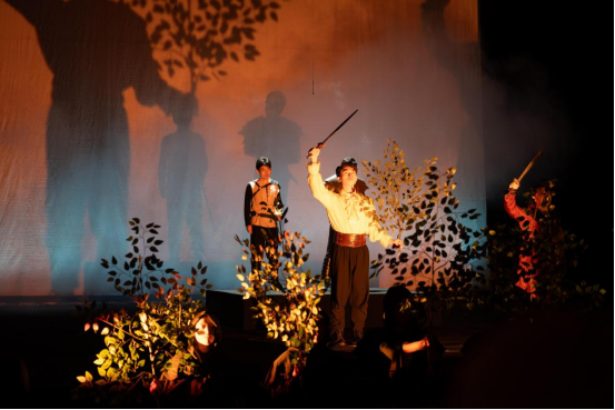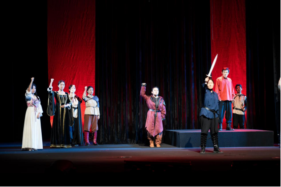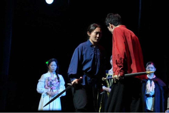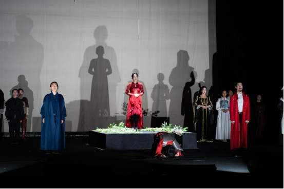 学院为毕业大戏编排邀请了中央戏剧学院的李唫、孙晓楠担任导演,特邀易艳担任舞美设计,王雨夕担任灯光助理,姚梦琦负责舞台监督,毛云飞负责表演指导,李南曦负责形体指导。由202941班学生成立演员组、学生导演组、宣传组、技术组、音乐组,经过数月的精心筹备和辛苦排练,从台词的改写、选角的细致挑选,到分组的精心排练、文创的精彩设计,每一个环节都凝聚了导演、老师、同学们的辛勤付出和真挚情感,最终圆满地将这部莎士比亚经典悲剧以全新的面貌呈现在了观众面前,同时为同学们的毕业季献礼,留下了青春回忆中浓墨重彩的一章。