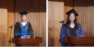 于金龙书记宣读优秀毕业生名单,并为他们颁发荣誉证书。本科毕业生代表任道安、硕士毕业生代表梅和卿分别进行了发言,回顾了大学时光的学习经历与成长感悟,表达了对北航及高研院数年培育之恩的由衷感激,并祝福毕业生们前程似锦。陈思老师作为教师代表,在毕业典礼上向所有毕业生们送上了温馨而真挚的祝福。