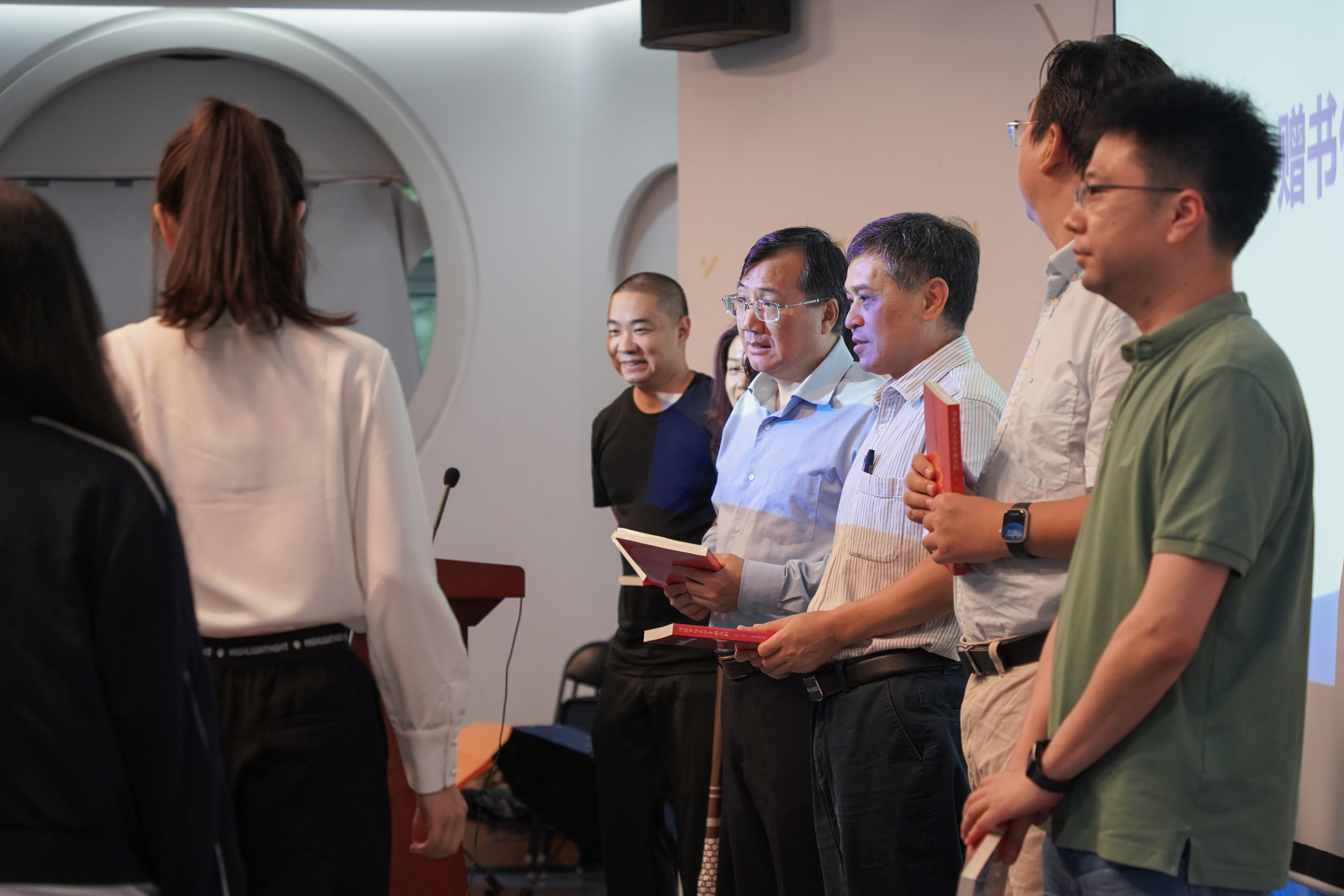 在老师和同学们发言结束后,院领导和教师代表为新生赠送经典著作《习近平与大学生朋友们(第二卷)》和《中国哲学概论》。