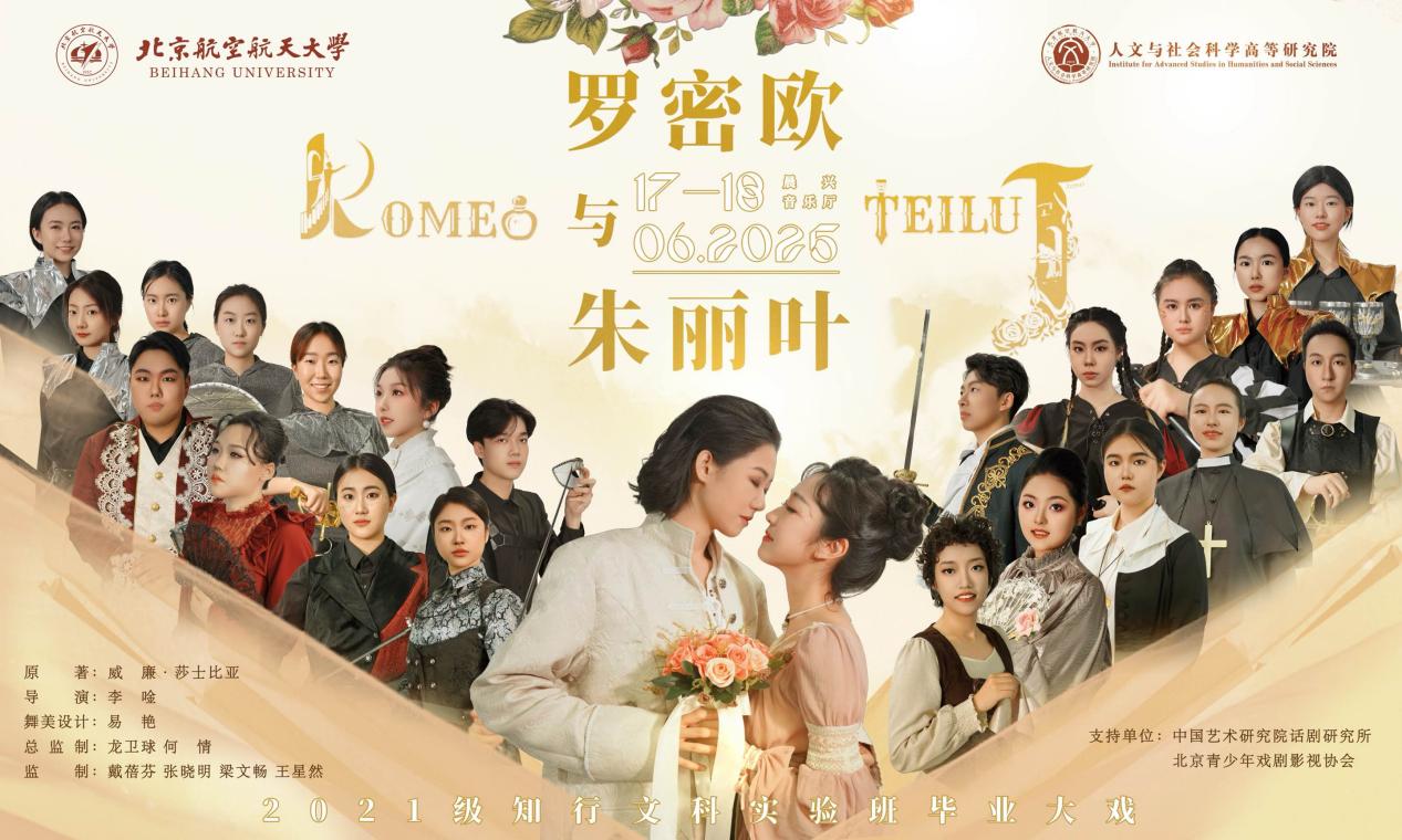 6月17日-18日晚,由beats365亚洲体育投注2021级知行文科实验班毕业生自编、自导、自演的莎士比亚经典戏剧《罗密欧与朱丽叶》在晨兴音乐厅上演,献礼北航毕业季。经过半年多的精心筹备和改编创作,这部经典剧目以全新的面貌和深刻的内涵呈现在观众面前,演出取得圆满成功,两校区师生1700余人共同观看了演出。