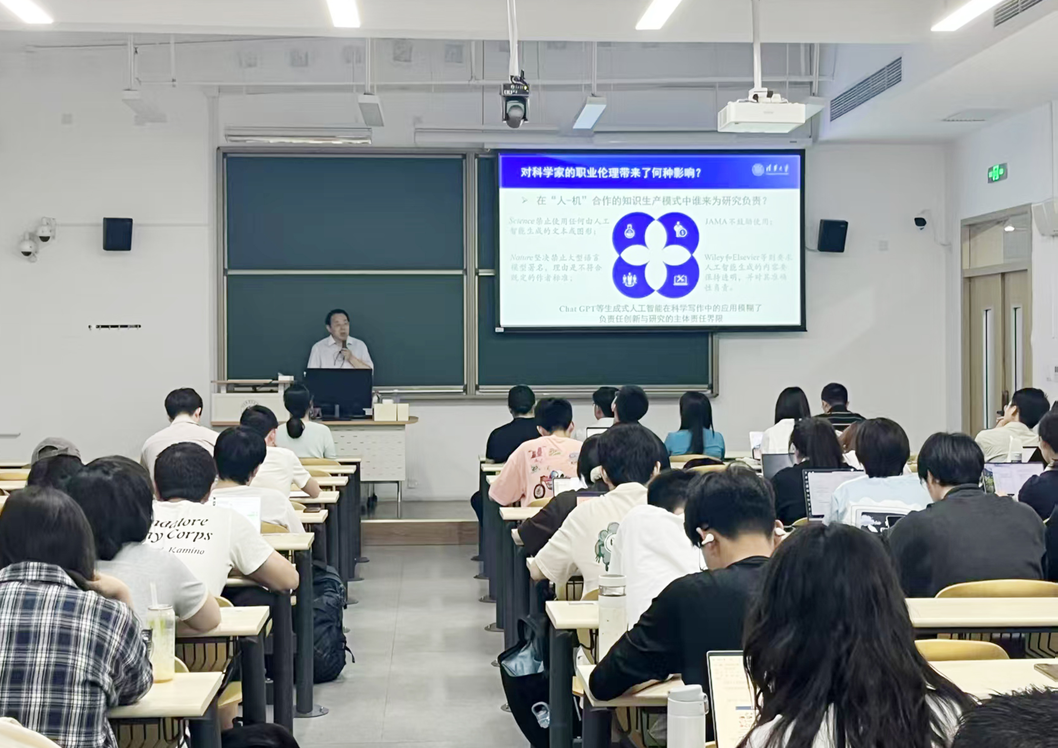 李正风教授讲授的主题为“AI for Science及其伦理治理”。随着人工智能技术的发展,AI赋能科学研究已经成为了现实,应当如何理解人工智能为科学研究带来的变革?他洞察了其中的三个特点:首先,AI对人类认识行为的技术性替代从肢体、感官上升到大脑。其次,AI for Science可能创造地融合多种范式。最后,AI for Science是开放的、进化的新型社会技术系统。李正风教授结合Alphafold、ChatGPT、DeepSeek等案例深入浅出的展开论述。在后续的讨论与问答环节中,在场同学积极提问,叶山岭老师就“如何更好的使用AI”展开进一步交流。