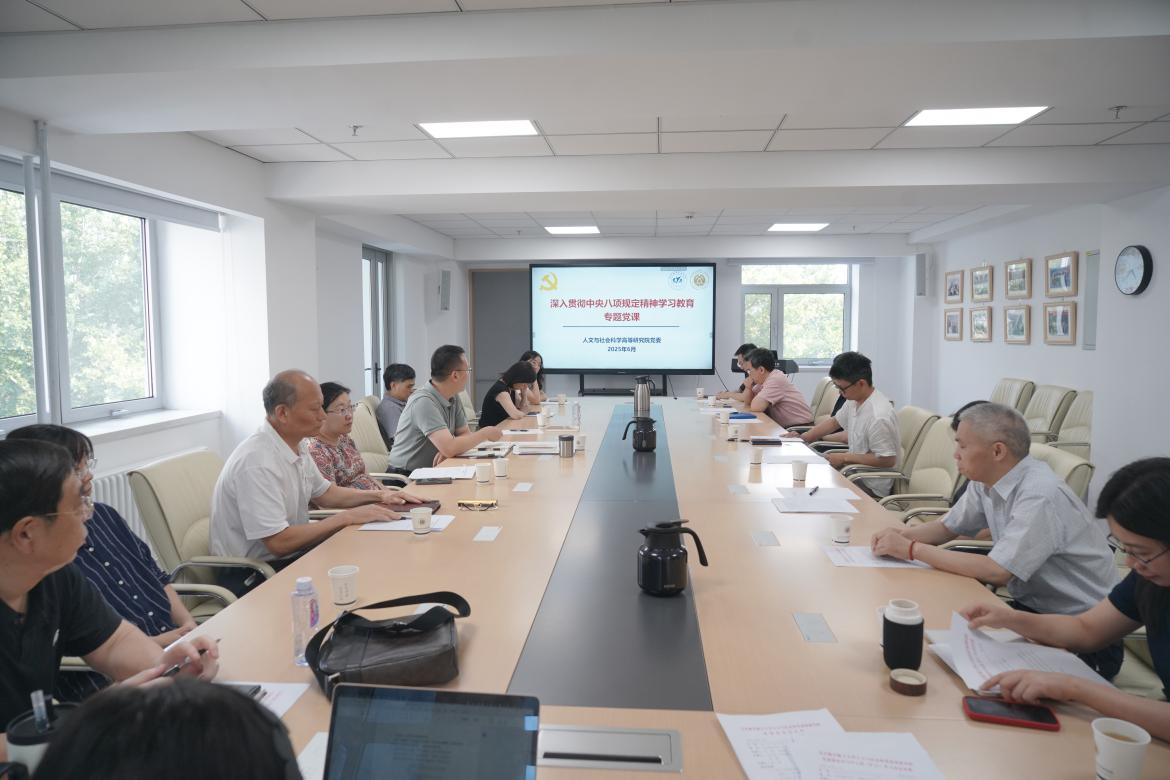 6月25日,高研院党委理论学习中心组学习习近平总书记重要讲话精神,党委书记何情讲授深入贯彻中央八项规定精神学习教育专题党课。学院全体教职工参加集体学习和专题党课。