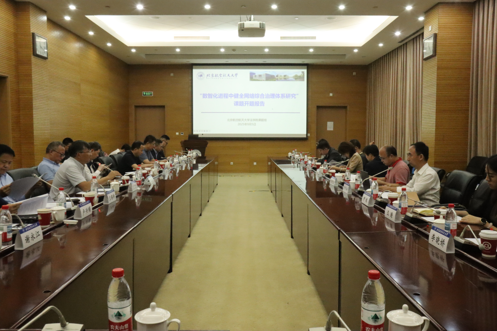 (通讯员 陈子涵)2025年9月5日上午,由中国网络空间研究院主办、北航工业和信息化法治战略和管理重点实验室承办的“数智化进程中健全网络综合治理体系研究”开题论证会在北航学院路校区新主楼第八会议室举行。本次会议旨在深入探讨数智化背景下网络综合治理体系的理论与实践问题,推动相关领域的学术研究与政策支持。