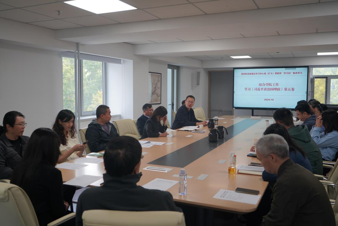 学院党委书记何情结合学院近期工作领学了《习近平谈治国理政》第五卷“一体推进教育科技人才事业发展”专题有关内容,他表示,要深入学习领会习近平总书记关于教育科技人才的重要论述,结合文科学院特点和高研院具体实际,正确处理规范有序和激发活力的关系,一方面严格落实学校关于意识形态工作、师德师风建设等有关规定和纪律要求,另一方面以改革创新和关心关爱提升教师积极性和获得感,坚持严管和厚爱相结合,统筹发展和安全,推动学院事业建设和教师成长发展行稳致远。