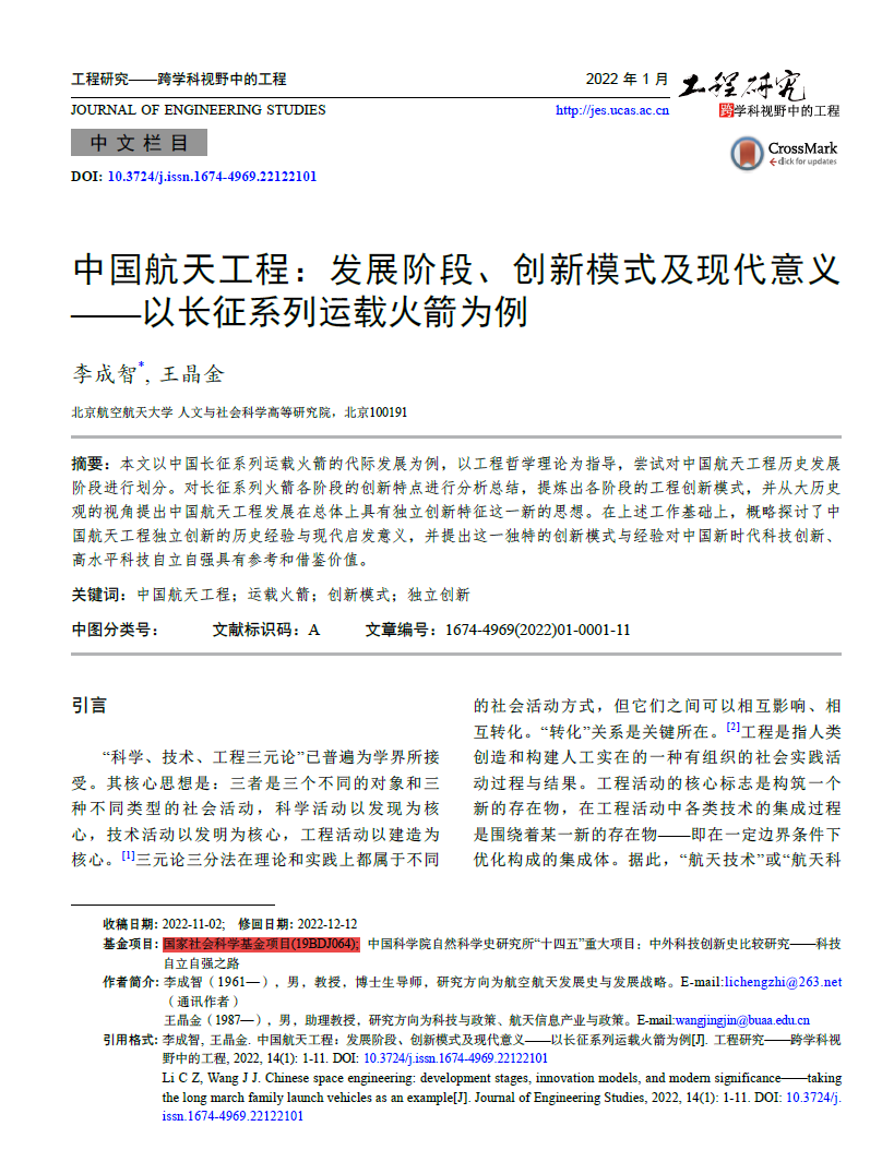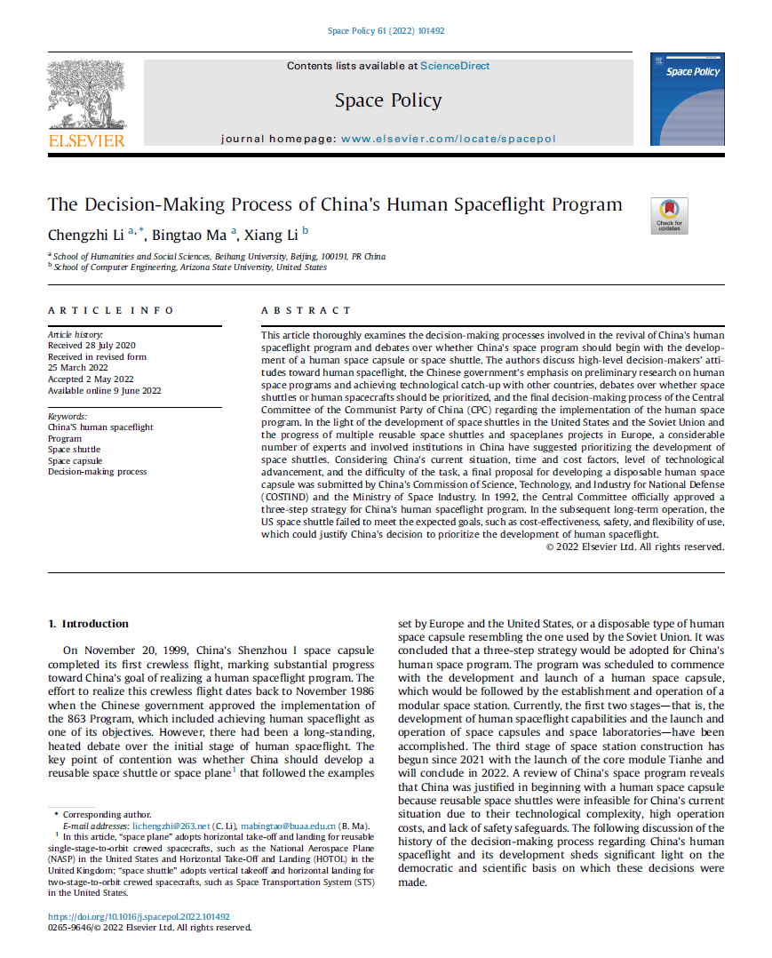 李成智教授发表在《中国科学院院刊》2019年第9期的论文《中国航天技术的突破性发展》在2020年和2021年连续两次入选该刊年度10佳热文榜。该文被《学习强国》平台转载,阅读量达18万+。