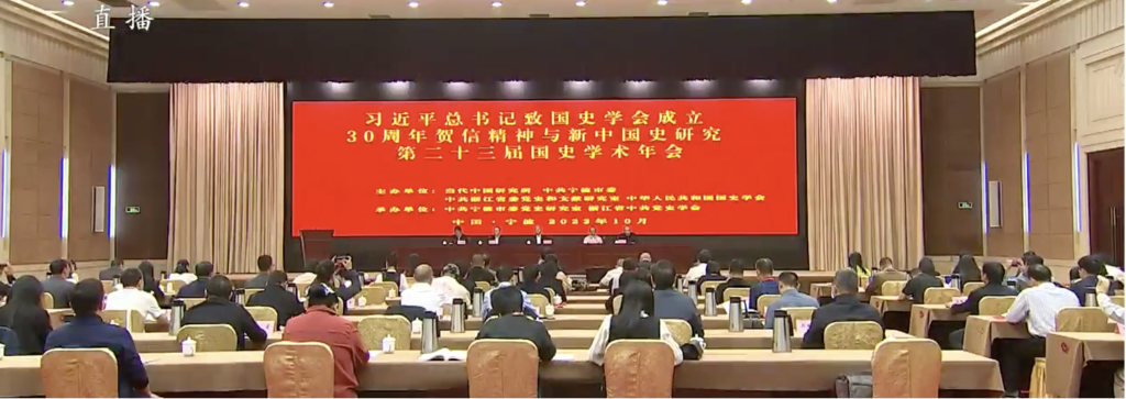 为深入学习贯彻习近平总书记致国史学会成立30周年贺信精神,推动新中国史研究事业高质量发展,第二十三届国史学术年会于10月13-15日在浙江宁波召开。中国社会科学院副院长、党组成员甄占民出席会议并讲话,中国社会科学院原副院长、中华人民共和国国史学会会长朱佳木作主旨报告,中共宁波市委常委、秘书长赵海滨致欢迎词。中共浙江省委党史和文献研究室主任朱瑞忠、国史学会秘书长张星星、中共宁波市委党史研究室主任陈银绍分别主持年会开幕式、闭幕式等有关环节。中国社会科学院当代中国研究所副所长李正华致开幕词,副所长宋月红作学术总结。我院王晶金老师作大会发言。