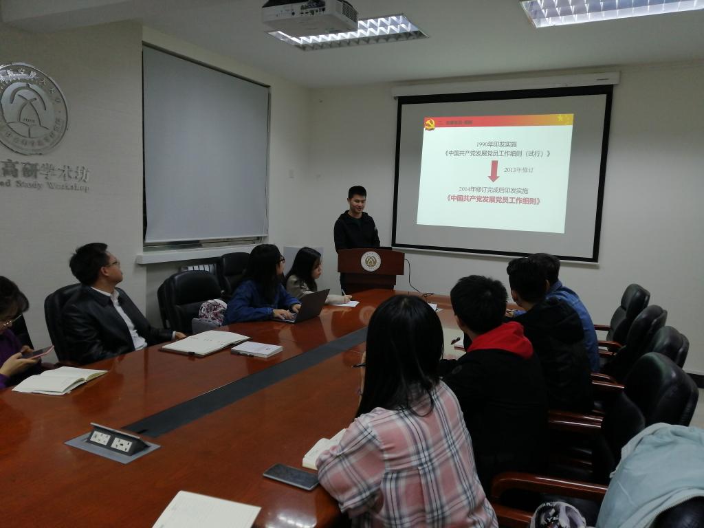 于金龙书记为本次培训会进行了总结。于书记表达了对李家强同志接手学生党务以来各项工作的充分肯定;他鼓励各支部委员结合此次培训,积极学习理解发展党员的目的和流程,努力做好近期发展党员的各项工作。