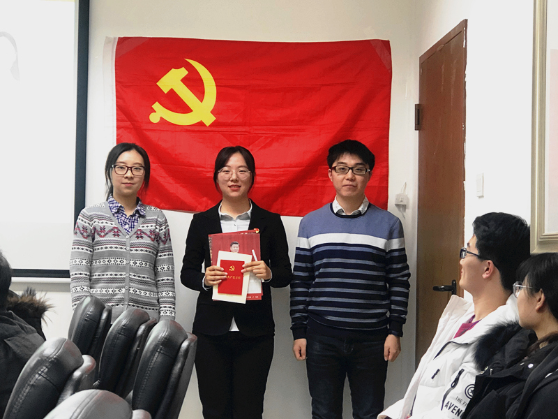 针对支部大会的决议,刚转正的党员同志分别表达乐自己的态度和决心,表示会以党员的标准严格要求自己,不断进步,成为一名优秀的中国共产党党员。随后,入党介绍人为其佩戴党员徽章并发放了党章等学习材料。