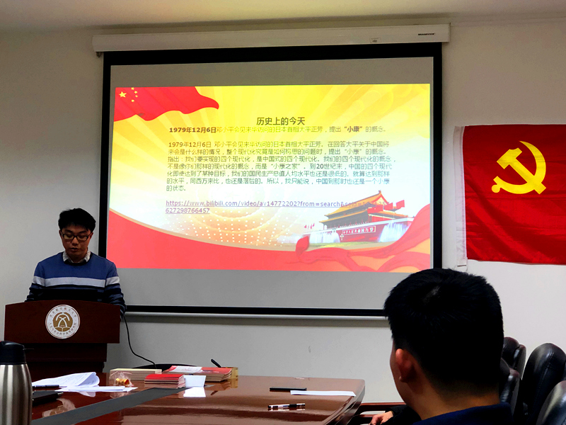 最后,党支部书记秦宇涛同志带领同志们进行了关于“小康”的理论学习,并观看纪录片学习资料。1979年的今天,邓小平同志提出了小康概念,而即将到来的2020年是全面建成小康社会的关键一年,在此时回顾“小康”概念的提出和相关政策的实施有很大意义。全体参会学生党员表示在此次学习中收获了许多。