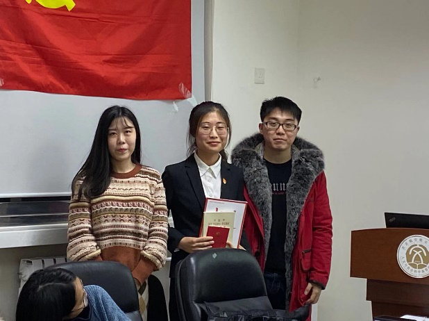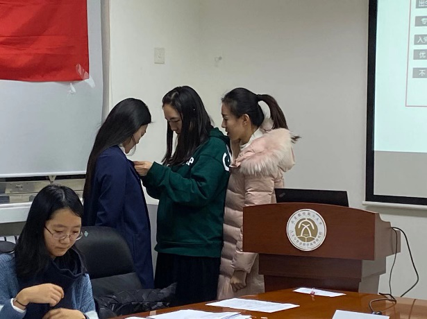 依据表决结果,支部大会做出决议:一致同意接收郝思媛、孙悦两名同学为中共预备党员。随后参会党员对新加入支部的预备党员表示祝贺,并由入党介绍人为新党员佩戴党员徽章和发放学习材料。