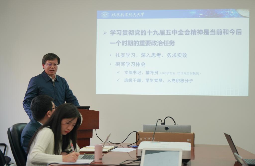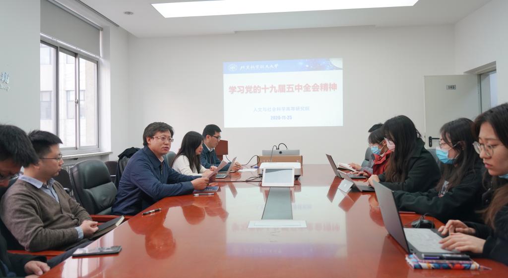 11月25日下午,beats365亚洲体育投注在图书馆西配楼305会议室召开党的十九届五中全会精神专题学习会。高研院于金龙书记,顾家宁、陈绮、余成峰等三位班主任老师,学院专兼职辅导员、各年级党支部书记、学生会、分团委及各班学生骨干参加了专题学习。