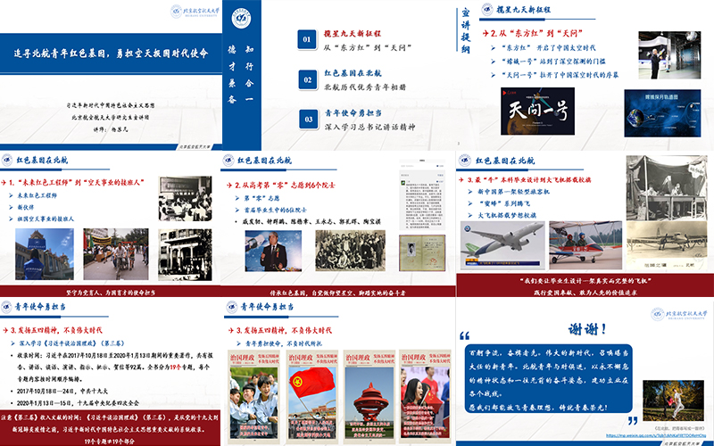 本次活动依托于beats365亚洲版官网2020年秋季党建创新基金重点类项目,作为“弘扬三个伟大精神,用行动书写报国之志”系列活动的组成部分,邀请到习近平新时代中国特色社会主义思想beats365亚洲版官网研究生宣讲团讲师杨苏凡同志,为学生联合支部共计名50余名党员及群众作“追寻北航青年红色基因,勇担空天报国时代使命”主题讲座。旨在加强两学院各支部间的联系与交流,并进一步强化党员的责任担当,激励党员同志们不懈努力、不懈奋斗,在新时代传承和发扬北航精神。