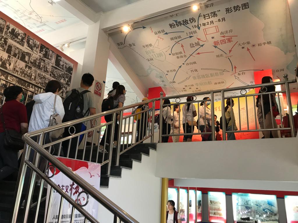 走进群山环抱的铁军纪念馆,展览按照新四军十年征战的光辉历程,分为“红军出山”“铁流东进”“重建军部”“驰骋江淮”“夺取胜利”“铁军精神”六大板块,以66块图文并茂的展板,10幅共计270平米的屋顶图,50平方米的大型油画、720幅照片、2千多人物组成的人像墙,40多件珍贵文物,生动再现了新四军不畏艰辛、可歌可泣的辉煌战斗历程。大家认真听取解说员的讲解,仔细观看了新四军抗日的图片、文字与实物,在接受爱国主义教育的同时,感受到革命先烈抗击日本侵略者和反动派的坚定意志与顽强精神。从纪念馆出来,依山势拾级而上是烈士陵园,园内设有抗战英雄纪念碑、新四军主要将领大型浮雕、纪念花园等。