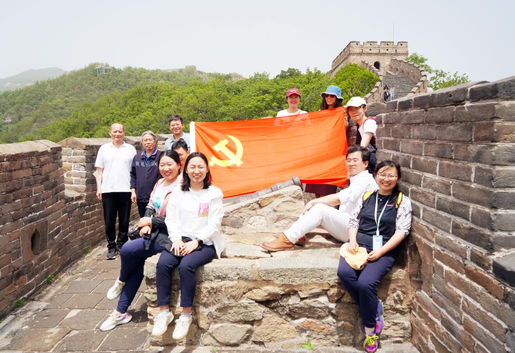师生党员一行还参观了慕田峪长城,在攀登过程中大家兴致高昂,组队前行,相互扶持,不时欣赏沿途壮阔的风景。慕田峪长城建于明代,主要为抵御关外游牧民族侵扰,起到了保卫中华文明的重要作用。而回想起近代的血泪屈辱,正是无数革命先烈抛头颅、洒热血,用自己的血肉筑成了新的长城,才有我们今天的幸福生活,我们应铭记历史,倍加珍惜这份来之不易的和平。
