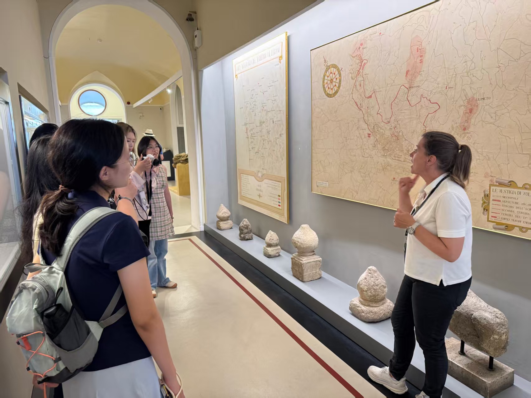 同学们在沃尔泰拉实地参观了意大利传统雪花石工艺与古代露天剧场的遗迹。在意大利第二大伊特鲁里亚文明博物馆Museo Etrusco Guarnacci(瓜尔纳奇伊特鲁里亚博物馆),同学们学习欣赏了大量珍贵的伊特鲁里亚文物,生动体会到早期意大利文明的魅力。