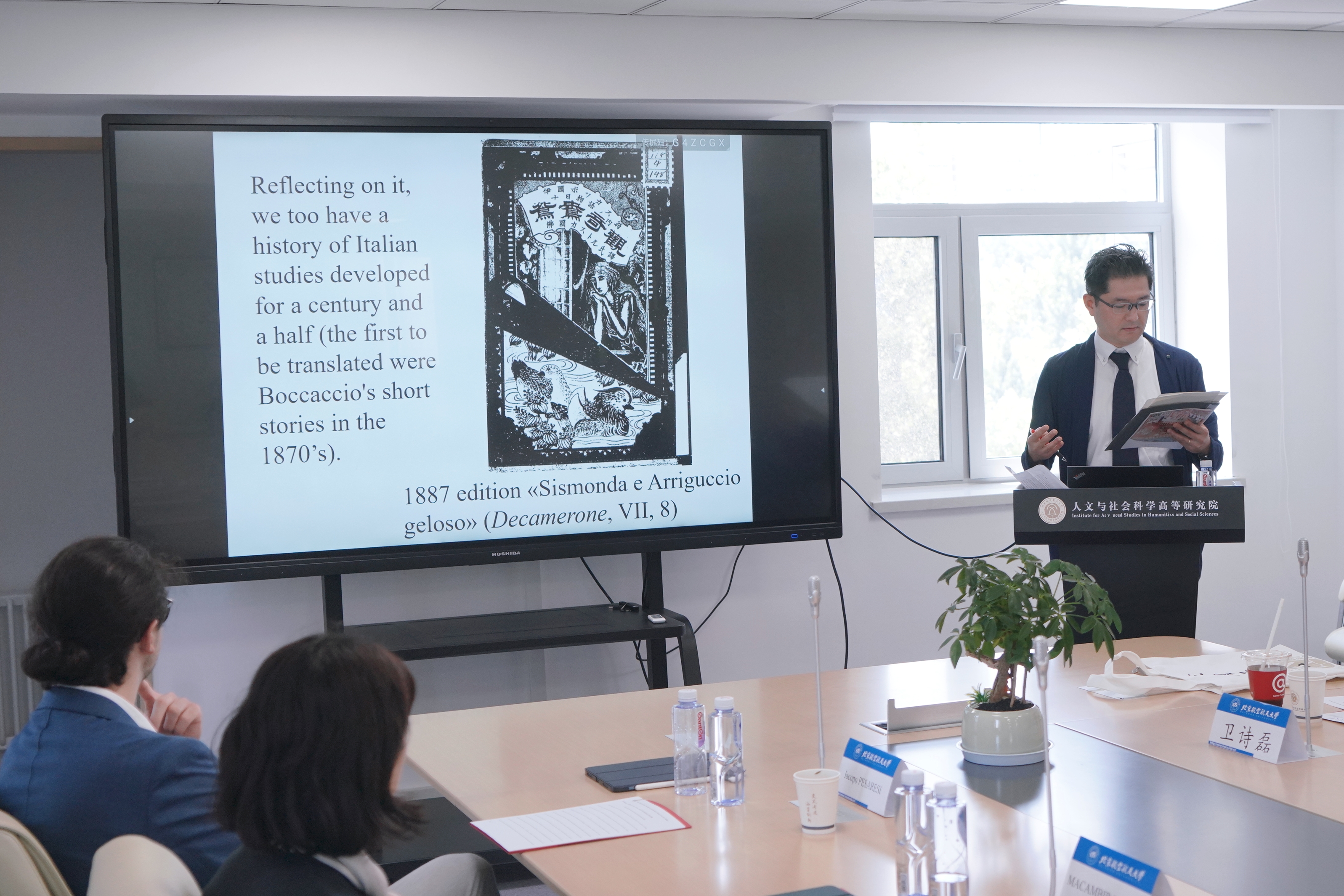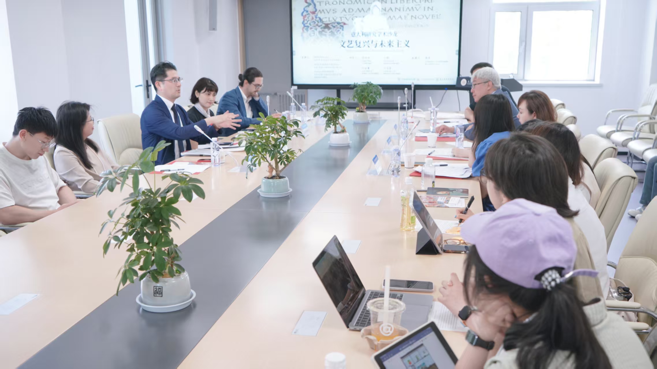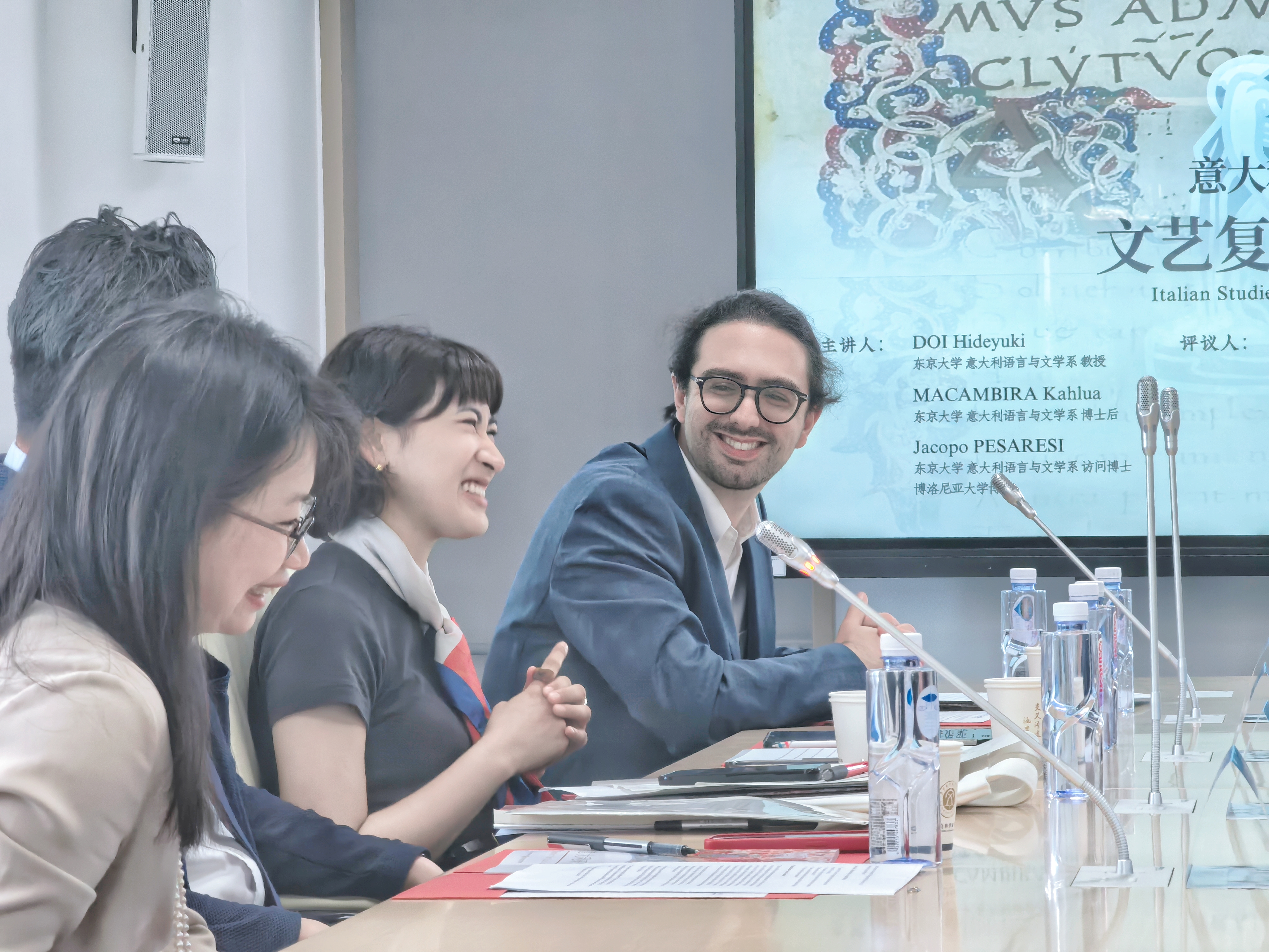 在随后的讨论环节中,文铮教授向三位来自东京大学的学者介绍了中国意大利研究的发展情况,介绍了中日在相关研究领域合作的重要意义和广阔前景。在场的老师和同学们围绕主讲人报告的具体内容、研究开展的背景、国际学术交流及技术前沿话题展开了热烈而深入的讨论,在互动中碰撞出多元文化交汇的灵感与火花。